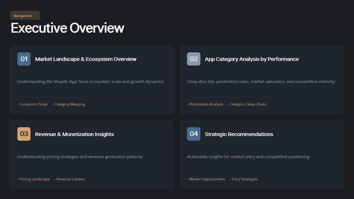Uncover the key metrics and competitive landscapes that define the Shopify ecosystem. Learn how to adapt your pricing strategy, prioritize the right integrations, and prepare your team for the next wave of competition.